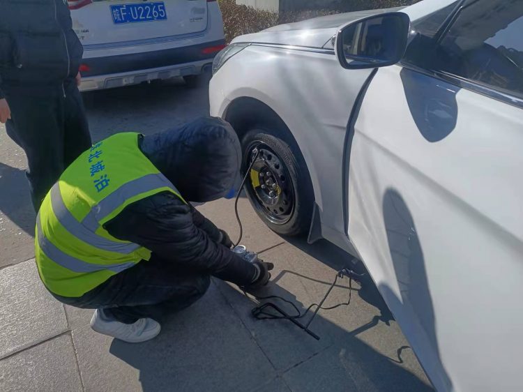近日,市人民醫(yī)院停車場(chǎng)班組在日常維持場(chǎng)內(nèi)交通中發(fā)現(xiàn)一輛即將駛出停車場(chǎng)的白色轎車左前輪胎爆胎,嚴(yán)重影響行車安全,隨即引導(dǎo)車輛靠邊停車,詢問后得知這一對(duì)駕車來醫(yī)院探望病人的年輕夫妻竟對(duì)爆胎的事情全然不知,駕駛員小伙子是新手也不知道如何更換備胎。班長(zhǎng)吳懷松同志當(dāng)機(jī)立斷,從黨員愛心服務(wù)站中拿出千斤頂和充氣泵,指揮人員以最快的速度更換了備胎、補(bǔ)足了胎壓,并叮囑他們到最近的維修點(diǎn)補(bǔ)胎或更換新輪胎,保證行車和人身安全。