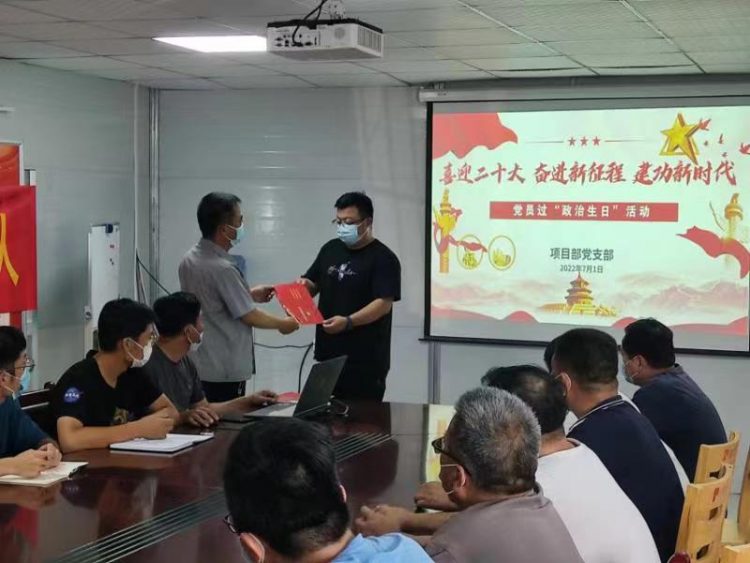 為慶祝中國共產(chǎn)黨成立101周年,喜迎黨的二十大,引導(dǎo)黨員干部進(jìn)一步堅定理想信念、牢記初心使命,7月1日上午,淮海建工公司項目部黨支部開展“為黨旗添彩,為黨徽增光”主題黨日暨黨員過政治生日活動。