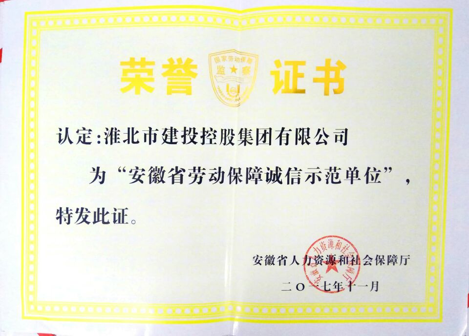 淮北市建投集團(tuán)榮獲安徽省勞動(dòng)保障誠信示范單位