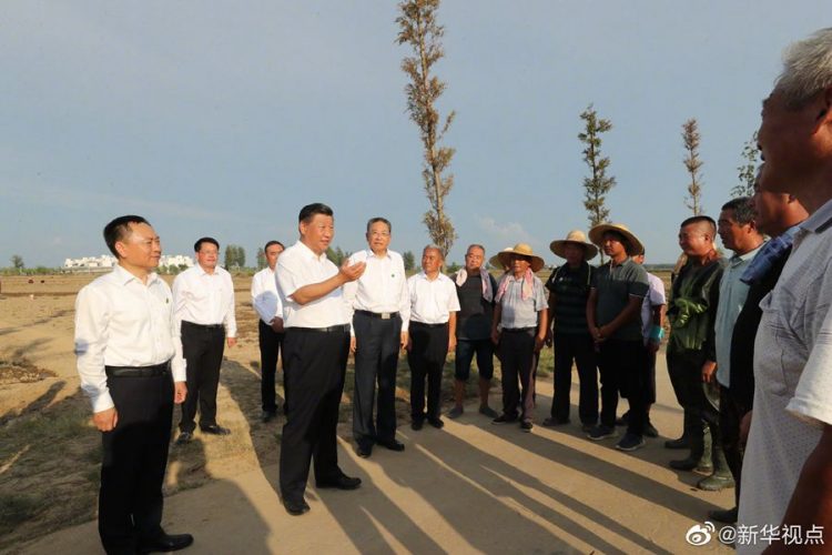 習(xí)近平總書記18日赴安徽考察調(diào)研。當(dāng)天下午,他先后來到阜陽市阜南縣王家壩閘、紅亮箱包有限公司、蒙洼蓄洪區(qū)曹集鎮(zhèn)利民村西田坡莊臺,察看淮河水情,走進田間地頭,了解當(dāng)?shù)胤姥淳葹?zāi)和災(zāi)后恢復(fù)生產(chǎn)等情況,看望慰問受災(zāi)群眾。(文字記者:張曉松 攝影記者:鞠鵬 王曄)