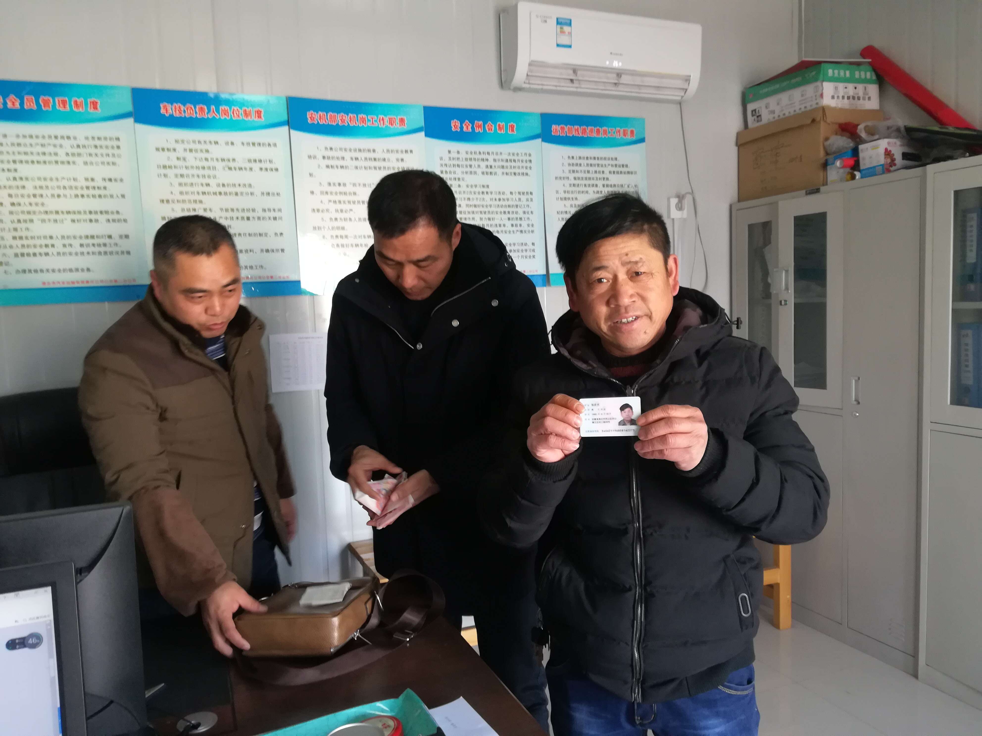 下午,失主來到縣開發(fā)區(qū)終點站調度室,劉新經過一番詢問,確定是失主遺失的物品后,當場交還,失主連忙表示感謝。