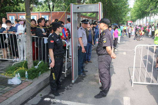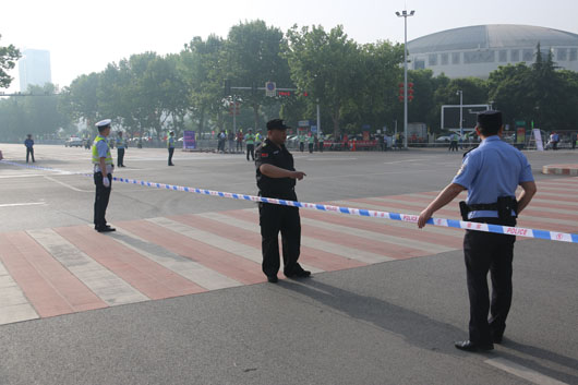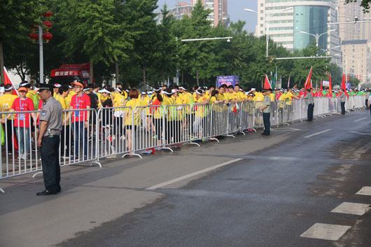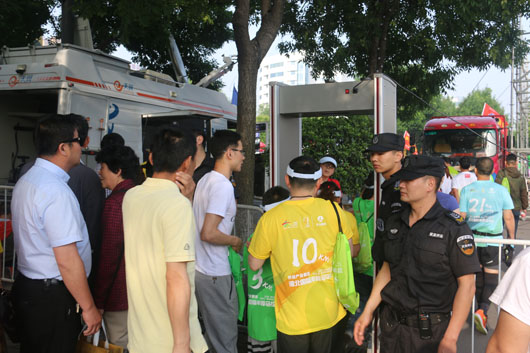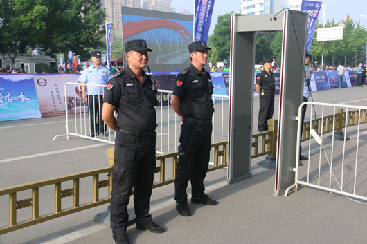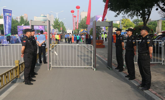 13日凌晨5:30分,負責市府廣場周邊區(qū)域的安保人員全部到崗。運動員入口安全檢查、重要部位值守、秩序維持、車輛指引、賽道沿線封閉防控等安保工作有序進行。