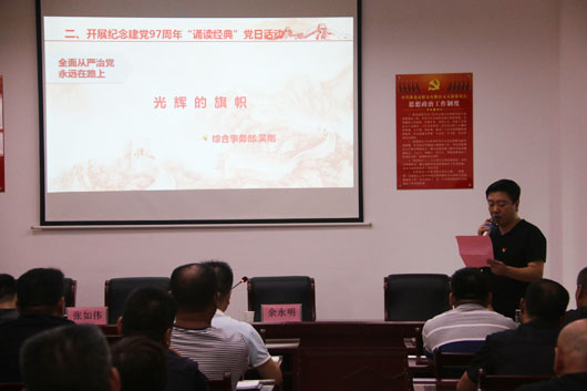 活動內容包括:紀念建黨97周年“誦讀經典”活動、“不忘初心,牢記使命”重溫入黨誓詞、觀看“中國碳谷·綠金淮北”紀錄片、“書記上黨課”活動等,談感受、談體會。