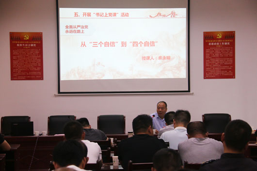 在最后開展的“書記上黨課”活動中,公司黨支部書記作了“從三個自信”到“四個自信”主題教育。告誡公司廣大黨員同志要倍加珍惜、長期堅持和不斷發(fā)展黨歷經艱辛開創(chuàng)的道路,高舉中國特色社會主義偉大旗幟,堅定道路自信、理論自信、制度自信、文化自信,貫徹黨的基本理論、路線、方針,為實現中華民族偉大復興的中國夢而奮斗。