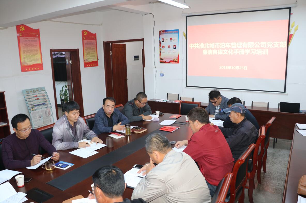 城泊公司黨支部組織學(xué)習(xí)《淮北城市泊車管理有限公司廉潔自律文化手冊》