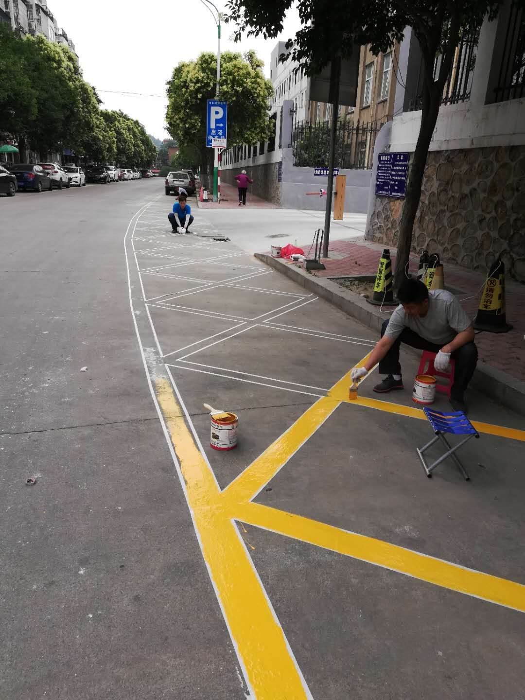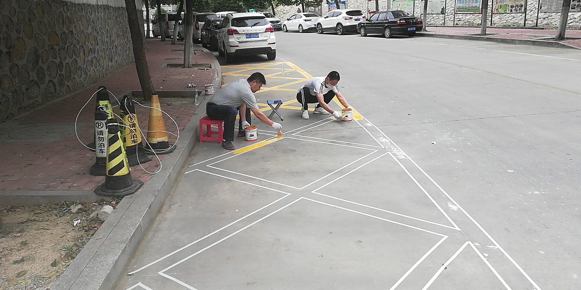 城泊公司積極組織人員施劃網(wǎng)格線維護(hù)停車秩序