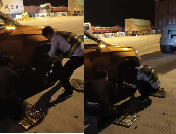 10月23日深夜,一輛外地牌照轎車在經(jīng)過S202收費站時突然停在了收費廣場不遠處無法啟動,造成我站收費通道擁堵,當班收費三班班長湯雪峰發(fā)現(xiàn)后立即上前查看情況,從司機那里得知是被路邊晾曬農(nóng)作物的農(nóng)具扎破了輪胎,因擔(dān)心繼續(xù)強行行駛造成安全隱患,當班班長湯雪峰立即組織組員幫助司機推行車輛至站廣場,同時,有修車經(jīng)驗的收費員拿來站內(nèi)便民修車工具幫助司機更換輪胎,大約經(jīng)過一小時的搶修幫助司機重新?lián)Q好了輪胎,在司機的感謝聲中,收費員們又從新踏上了工作崗位。