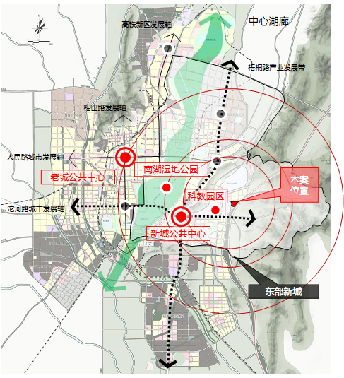 本項目位于淮北市東部新城,距離中心城區(qū)直線距11KM,距離南湖濕地公園6KM,距離規(guī)劃中的新城公共中心4KM。緊鄰大學城,毗鄰朱山公園、泉山公園及東部山脈,資源環(huán)境豐富。作為東部新城首個商業(yè)住區(qū)項目,在新城建設中有一定先導作用。